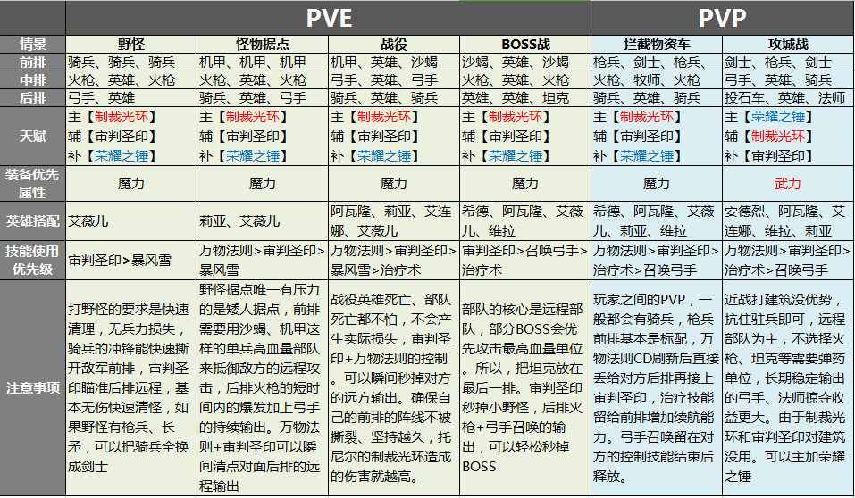 PVE打小野怪的环境中,一般骑兵第一波冲锋可以清理大部分野怪。当野怪按阵型排列开的时候,释放审判圣印可以直接秒掉大部分野怪。达到无伤清野。