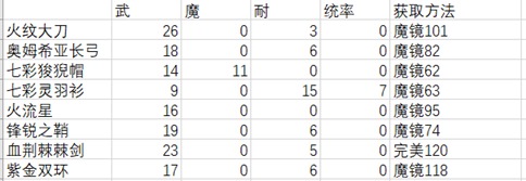 武器推荐红色暴击剑,加20%暴击。这个武器比较抢手,目前获取可以通过魔镜完美120,之前有一次抽奖,还有砸墙活动来获得。如果把暴击剑给别的游侠使用了,可以火纹大刀搭配紫金双环(都有20%暴击效果)。