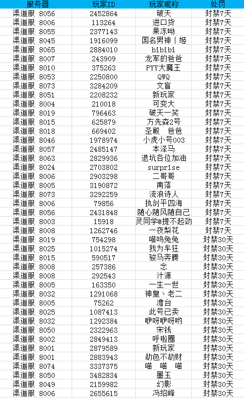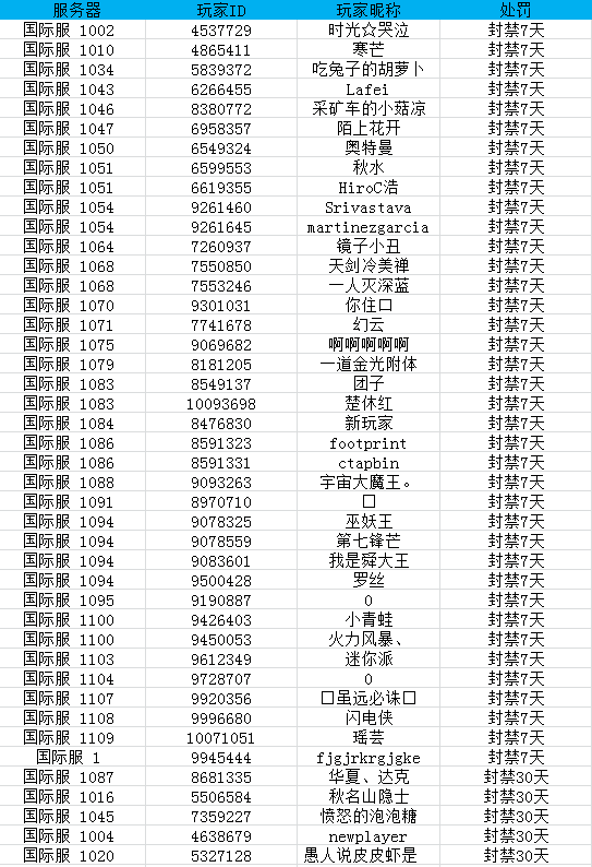 为了维护游戏内公平的游戏环境,让广大领主拥有更好的游戏体验,现已将被系统认定为使用外挂的领主进行了封号的处理,并附上11月22日处罚名单。