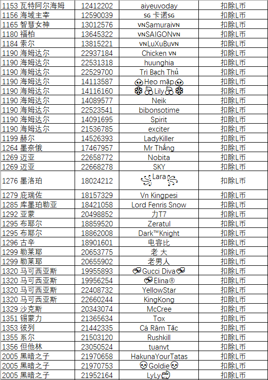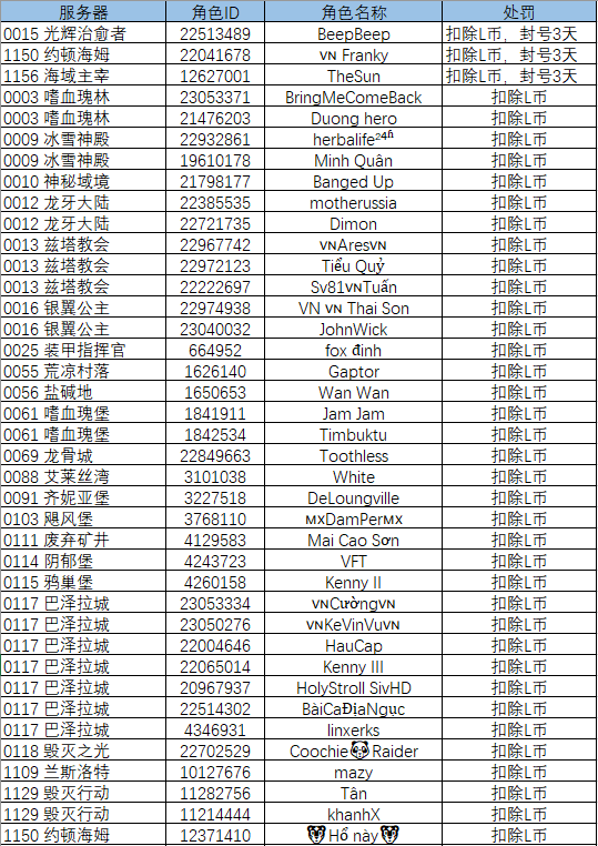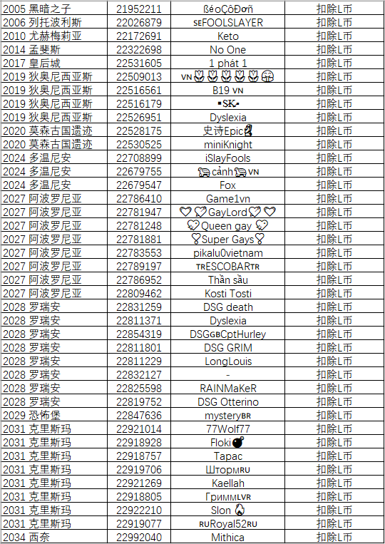 以下为本次部分受处罚的领主的名单: